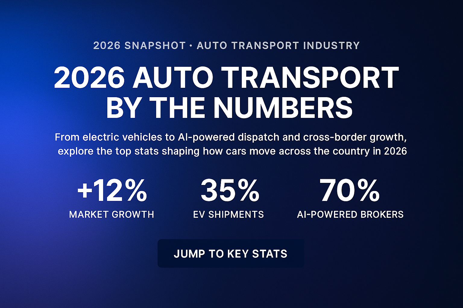 The auto transport industry is entering one of its most transformative years. From booming market growth to AI-powered operations and electric vehicles taking over transport loads, 2026 is shaping up to be a year of rapid evolution. Whether you’re a shipper, a broker, or just someone curious about how cars move around the country, these numbers paint a clear picture of what’s happening behind the scenes — and why it matters.